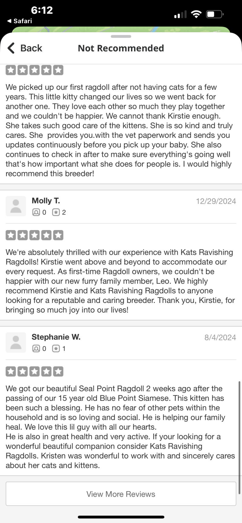 We also breed beautiful Ragdoll kittens looking for their forever homes. Our kittens are raised with love and care, well-socialized, and come with a 2 year genetic health guarantee, vet checked, vaccinated, dewormed & microchipped. Check our availability of kittens by googling "Kats ravishing ragdolls" for current litters and upcoming litters. You will view our website, Facebook, TikTok's & ads & profile on gokitty.